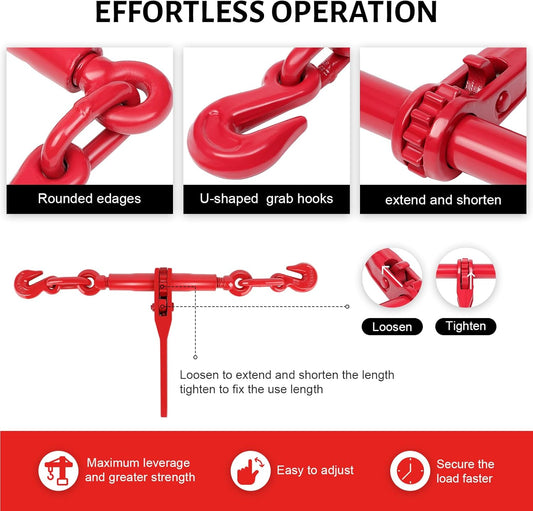 Essential for heavy-duty flatbed cargo securement, our industrial Load Binders provide maximum tension for G70 and G43 transport chains. Choose from two primary styles: Ratchet Chain Binders, which utilize a forged gear mechanism for safe, incremental tightening with minimal manual force, and Lever Binders (Snap Binders) for rapid installation and quick-locking leverage. Drop-forged for extreme durability, our chain binders are engineered to fit standard 5/16", 3/8", and 1/2" tie-down chains, ensuring your heavy hauling loads stay locked down and fully DOT-compliant.